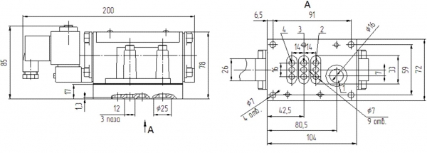 Четырехлинейный, двухпозиционный с односторонним электропневматическим управлением с ручным дублированием и пружинным возвратом в исходное положение. Конструкция распределительного устройства: плоский притёртый золотник |